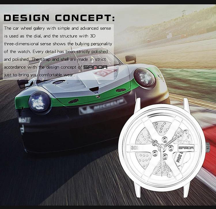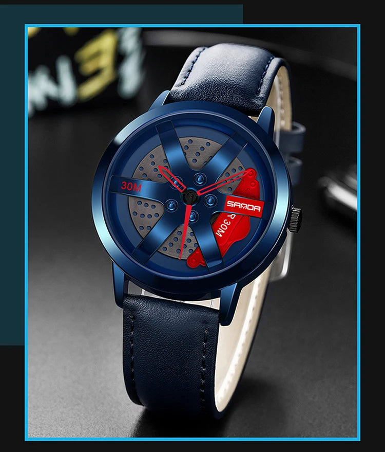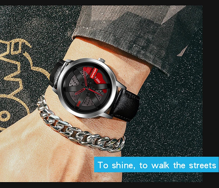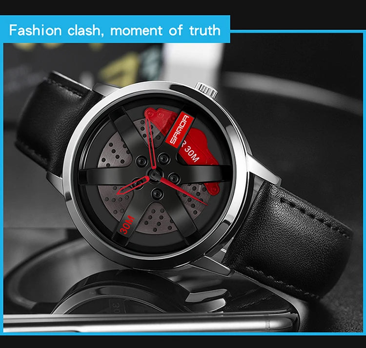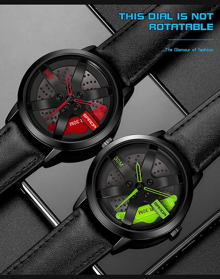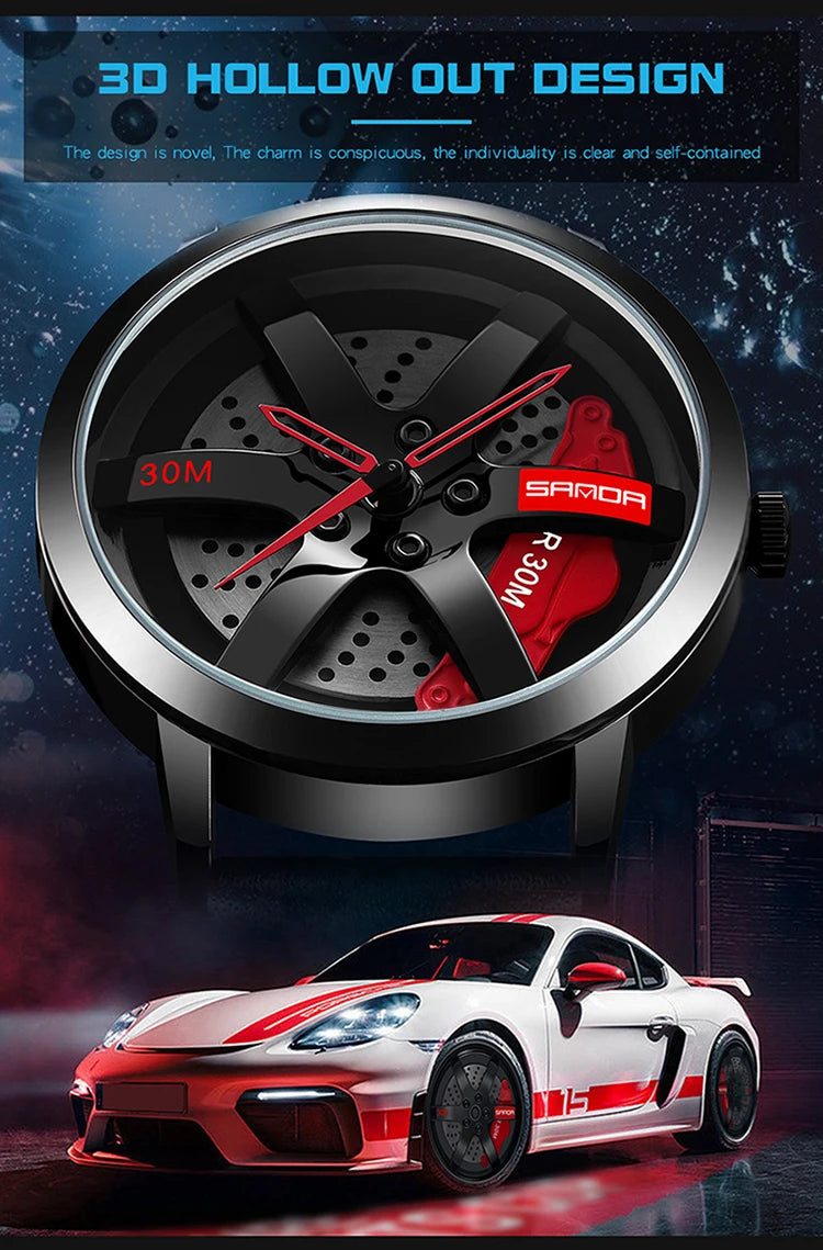 Beautiful 3D Sports Car Wheel Rotating Dial Men's Watch
