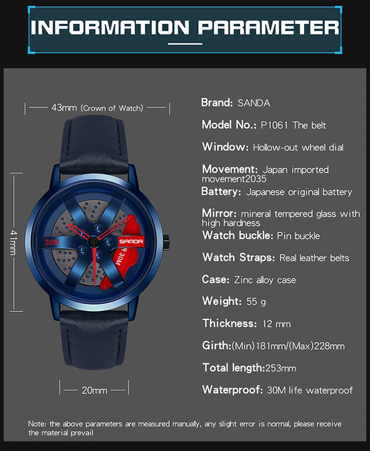 - Distinctive Sports Car Aesthetics: Stand out with the watch's unique rotating dial, a nod to the powerful allure of a sports car wheel.