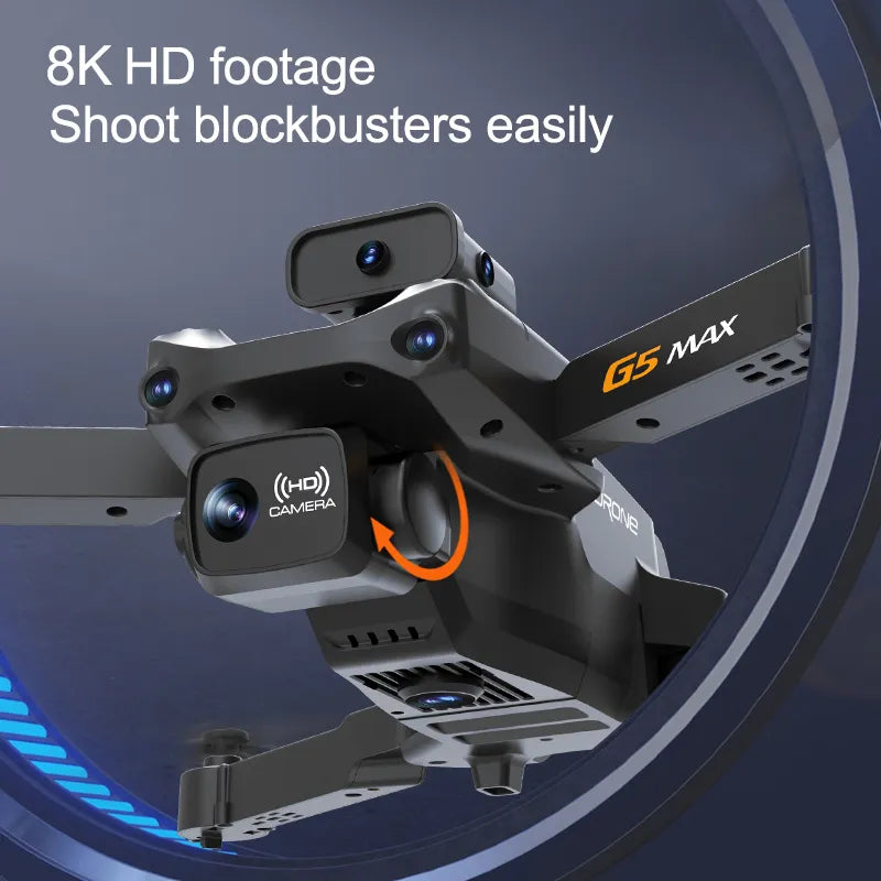 Elevate your photography and videography skills with our G5Max drone's professional HD capabilities. With an 8K camera and advanced features, you can capture stunning images and videos from new angles and perspectives. From scenic landscapes to dynamic action shots, this drone empowers you to unleash your creativity and redefine the art of aerial photography. Don't miss the opportunity to own the G5Max and take your photography to the skies!