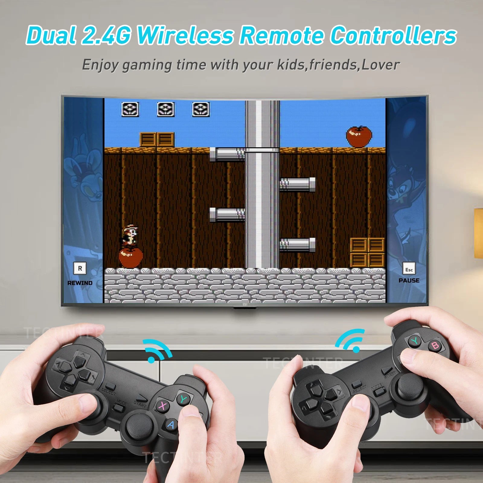 Indulge in a gaming paradise with our 4K TV Game Stick 2.4G. Packed with thousands of classic titles, from iconic favorites to hidden gems, this console offers a diverse library that caters to every gamer's preferences. Rediscover the joy of timeless classics and explore new adventures in the world of retro gaming.
