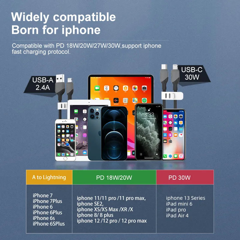 Built to last, our fast-charging cable combines speed with durability. Its sturdy construction and tangle-free design make it perfect for everyday use. Whether you're at home or on the go, this cable is your trusted companion, delivering the charging performance your iPhone deserves. Upgrade your charging experience today!