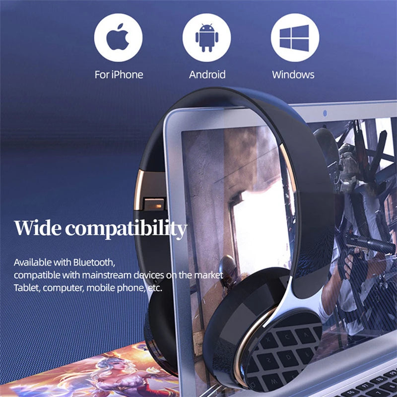 Designed to keep up with your on-the-go lifestyle, our headphones feature an extended battery life, ensuring that your music never stops. With universal compatibility across devices, you can seamlessly switch between your phone, tablet, and laptop. Stay connected and savor the freedom to enjoy your favorite music, podcasts, and calls anytime, anywhere. Upgrade your audio game with our Wireless Bluetooth Stereo Headphones – where convenience meets uncompromised sound quality.